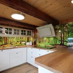 Det finns ett komplett kök, samt mathörna. I köket finns även vattenkokare, kylskåp och ugn. Karlsruhe / Baden-Baden flygplats ligger 145 km från villan med 3 badrum.
